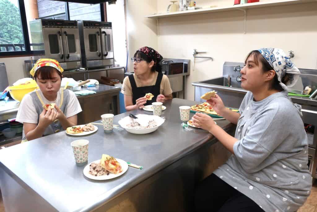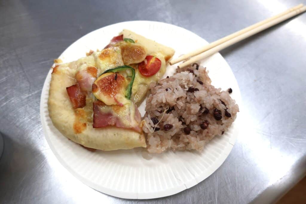 最後に、焼きあがったパン🥐の試食会💕ピザパンと一緒に鶴田さんのご厚意で赤飯もいただきました~🎶どちらもめちゃくちゃ美味しかったです🥰お母さん方も『時間があっというまで、とっても楽しかったです❗』『楽しすぎて、美味しすぎて、お土産もたくさんいただいて大満足です😁』と皆さん大満足だったようで、またやりたいです✨との声が上がっていました‼️パン作りを指導してくださった鶴田さんに感謝です💛ありがとうございました❗