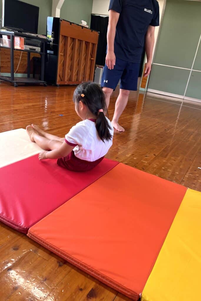 後転はなかなかやらない動きなので、怖がってしまう友だちもいましたが、村山先生がサポートしてくださり、安心して後転する事ができていました👏✨