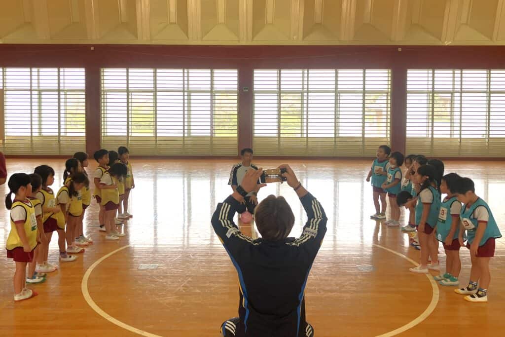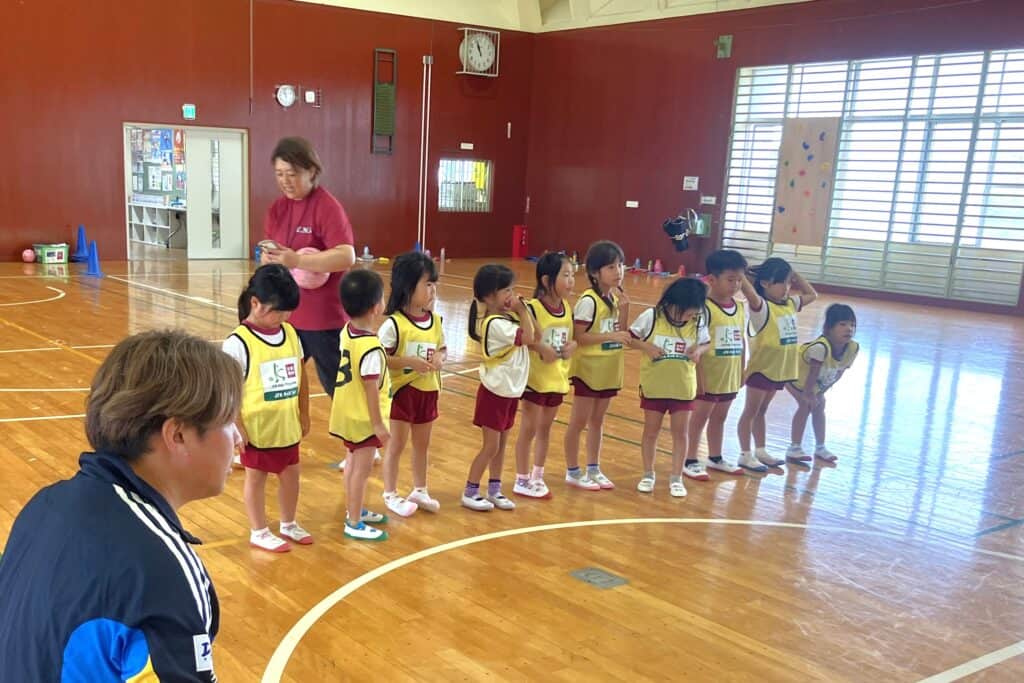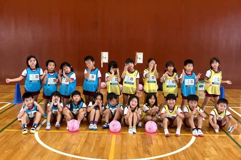 「二人組で膝やおしり、背中とお題が出るところをタッチしあったり、さくら組さん対うめ組さんとミックスのチームで試合をしたりとあっという間の1時間でした😍!!
