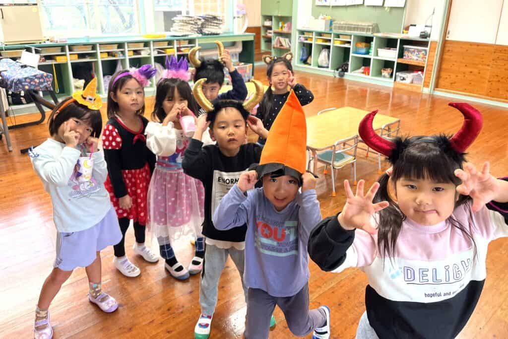 カチューシャを付けてみんなで「トリックオアトリート!」と事務室にお菓子をもらいに行きました🍭🍫