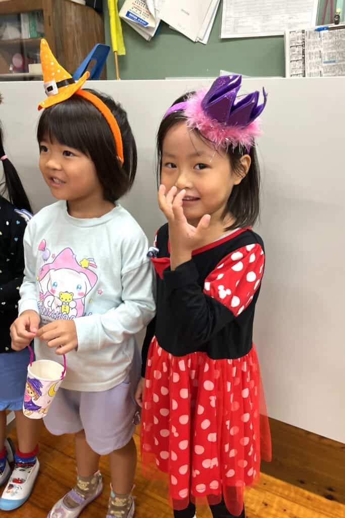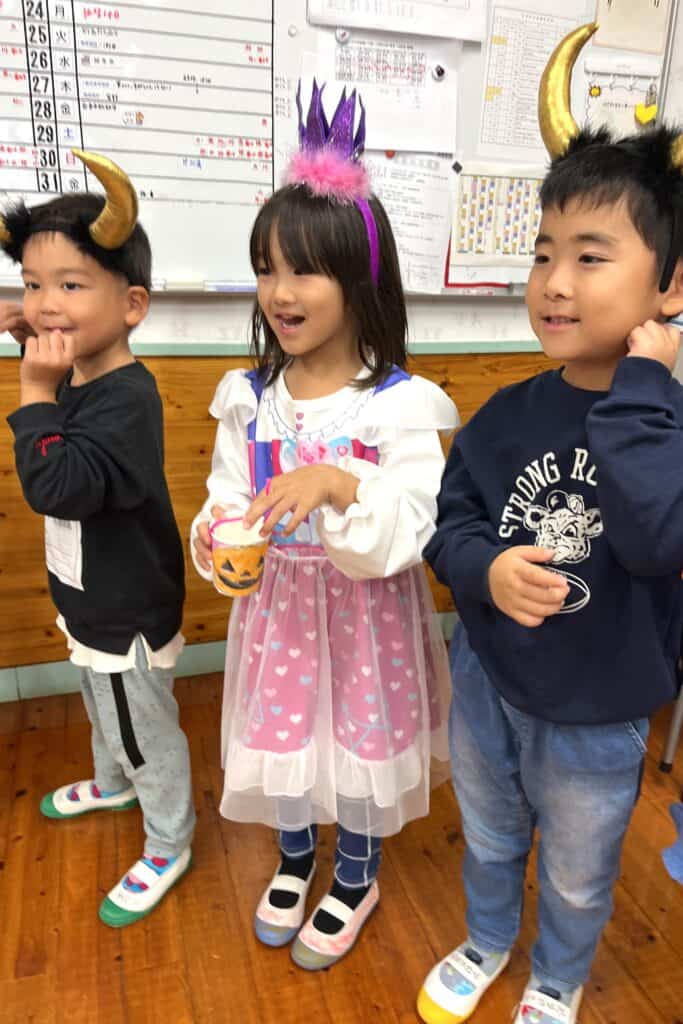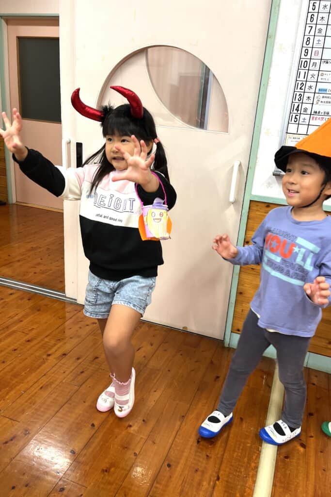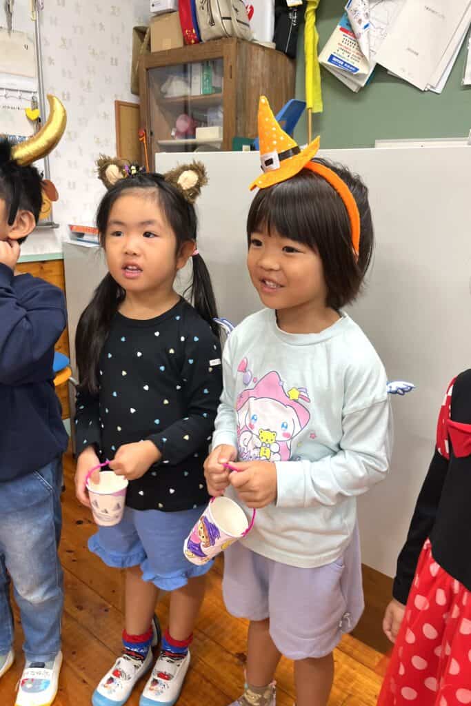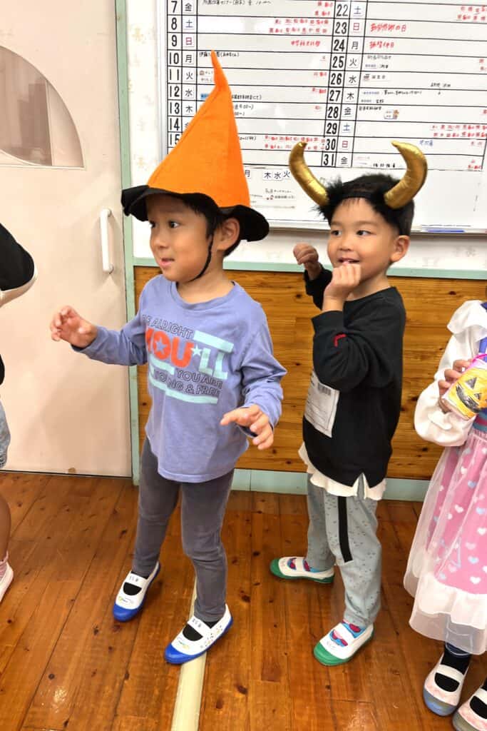 仮装してきた友だちを見て「わ~」と驚いていたうめ組さんたちでした🧛‍♀️🧙‍♀️