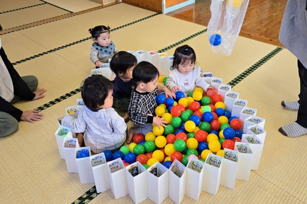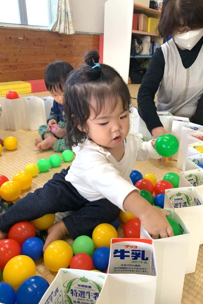 たんぽぽ・ひよこ組 ボールプール遊び 2025 11/14 保育園ブログ たんぽぽ ひよこ 今日は小さなボールをたくさん使って、牛乳パックで作った囲いでボールのプールを作りました😆 ボールを掴んで牛乳パックの穴に入れたり、コロコロと転がしたり、プールに寝転がったりと楽しんでいた子どもたちです🥰 保育園ブログ たんぽぽ ひよこ うめ組 外遊び さくら組 お散歩 関連記事 ばら組 運動遊び 2025年11月20日 うめ組 運動遊び 2025年11月20日 さくら組 運動遊び 2025年11月20日 たんぽぽ・ひよこ組 おままごと 2025年11月19日 さくら組 お散歩 2025年11月17日 うめ組 外遊び 2025年11月14日 さくら組 外遊び 2025年11月10日 もも組 外遊び 2025年11月7日