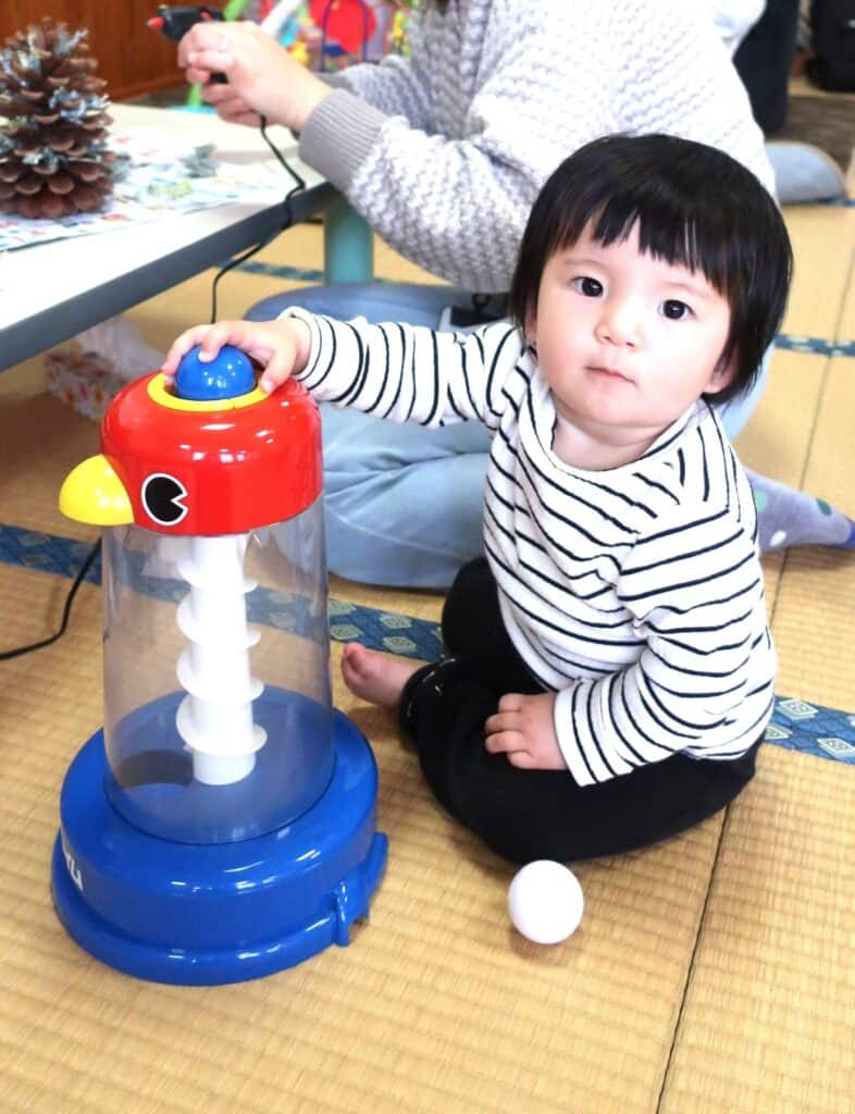 お母さん方、とっても手際がよく、こ~んな可愛いクリスマスツリー🎄が出来上がりました😀✨その間、子どもたちは…マットの上で機嫌よくゴロンゴロンしてくれていたり、おもちゃで遊んでいたり🎵ほんとにおりこうさんで泣かれることなく過ごされていました🥰