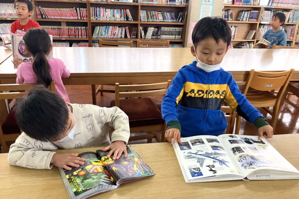 同じ空間でみんな居心地よさそうに絵本を読む姿を見ていると、もう小学生になったような錯覚に…😅💦