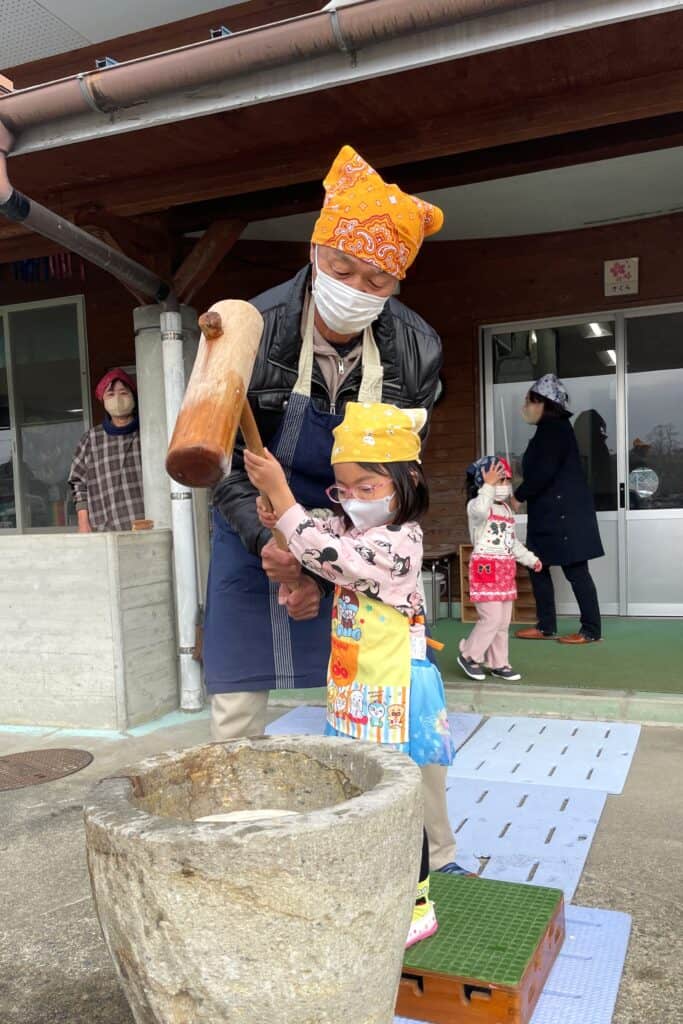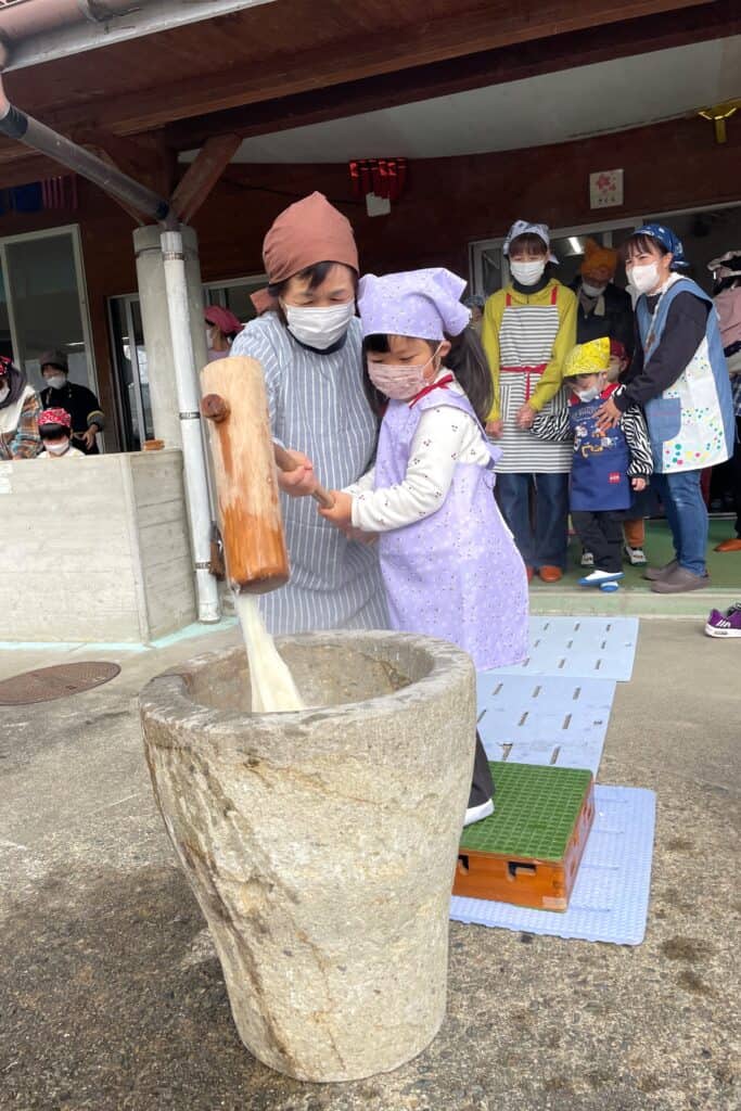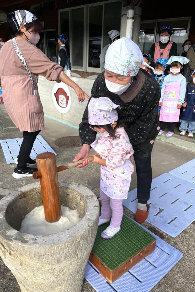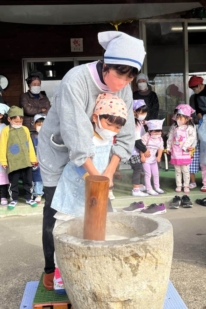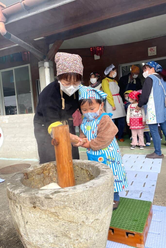 杵でついたり、餅を丸めたりと楽しんで餅つきを体験することができました。