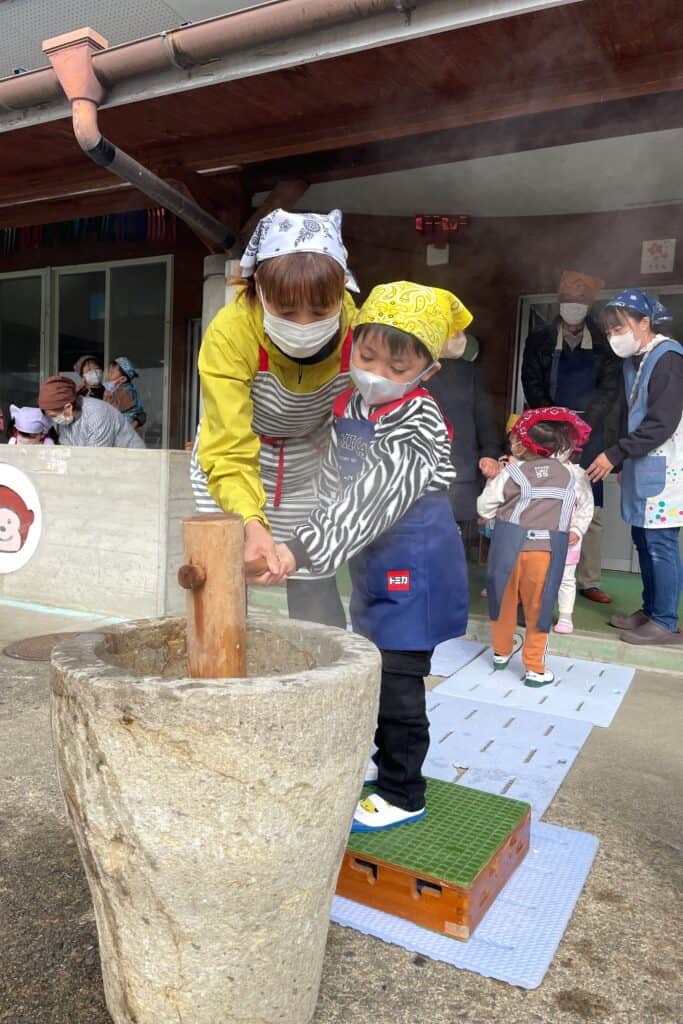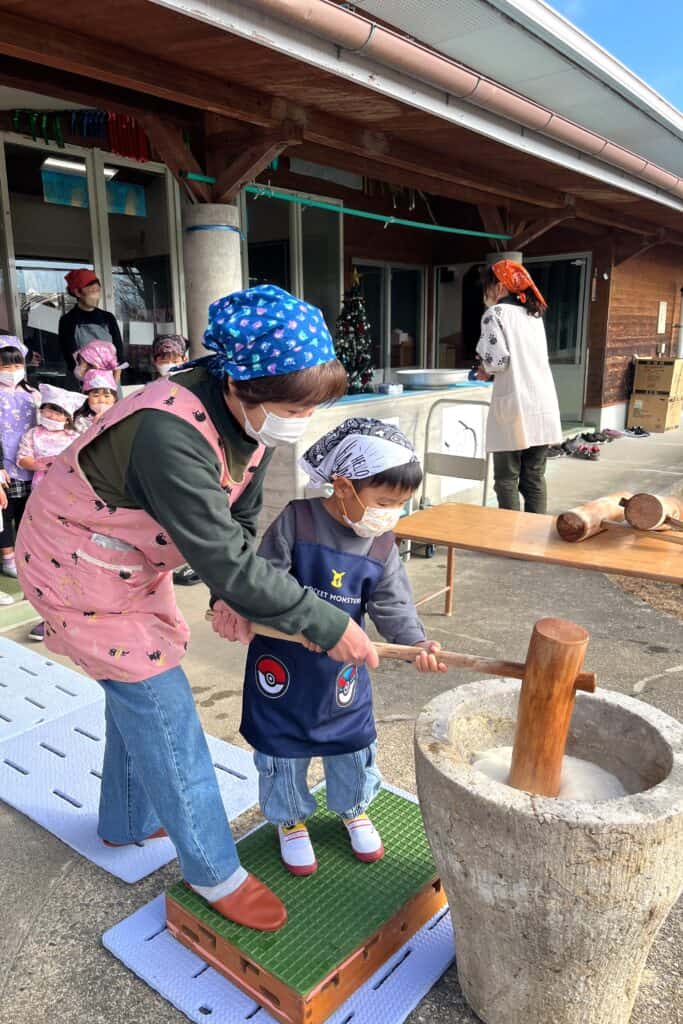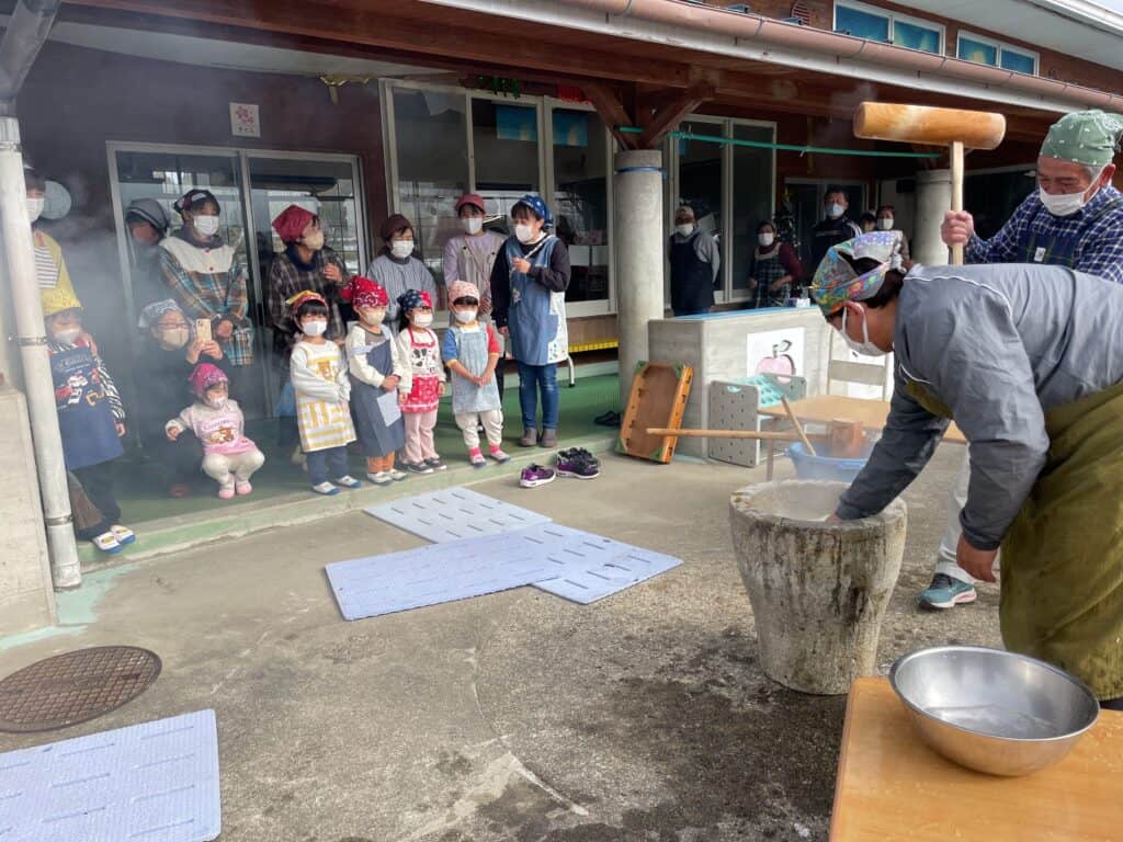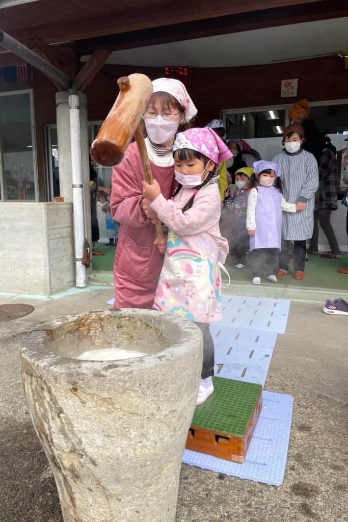 杵でついたり、餅を丸めたりと楽しんで餅つきを体験することができました。