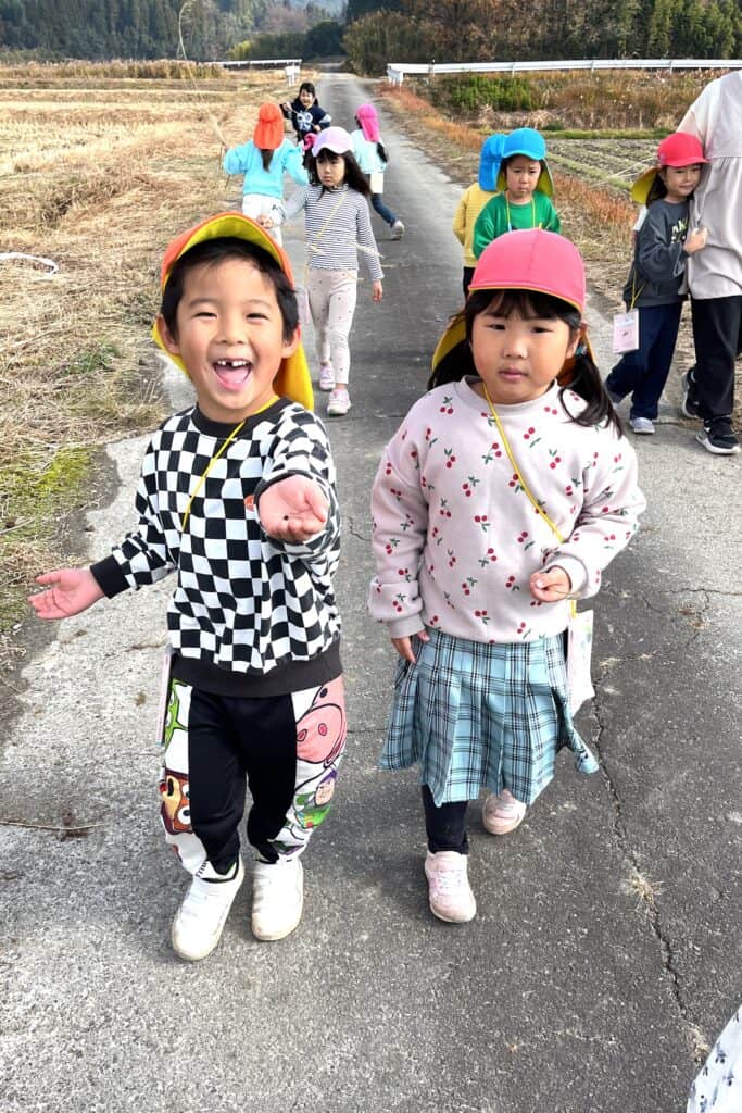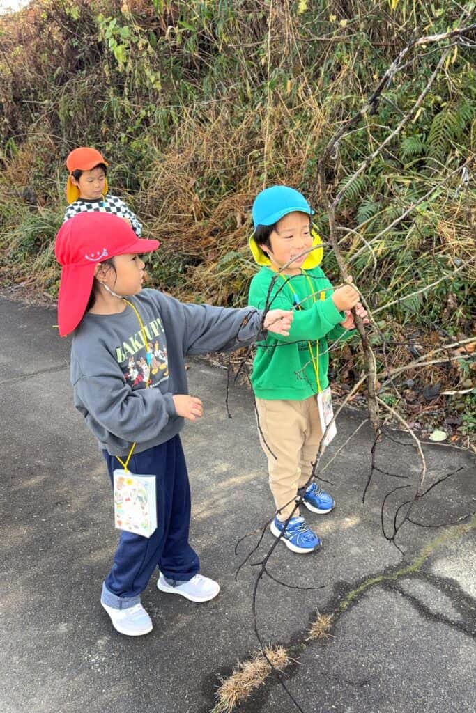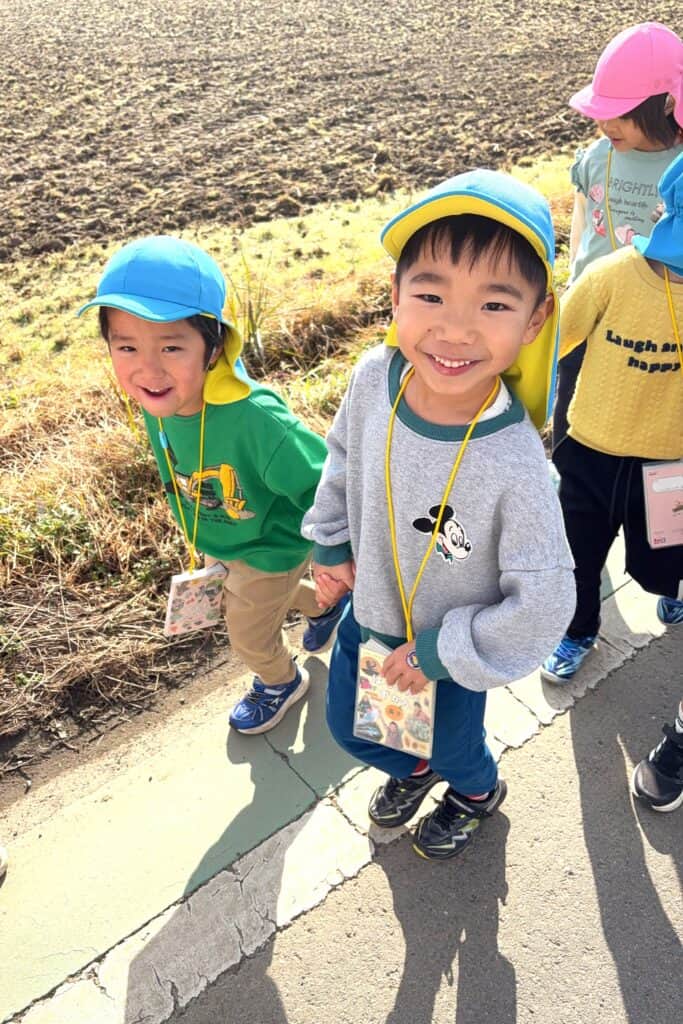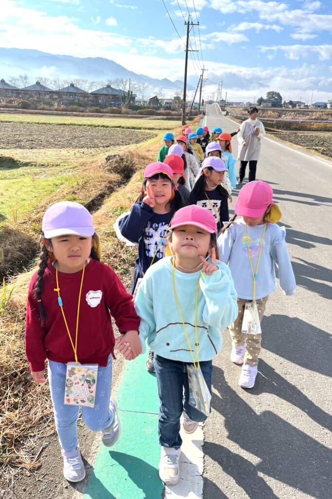 歩きながら会話も弾み、車が来たときや道の端から落ちないようになど安全面に気を付けてあげていて年長さんぶりを発揮していました😊✨