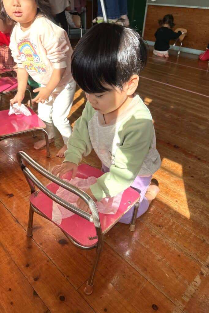 もも組 大掃除 2025 12/26 保育園ブログ もも 今年最後の保育日⭐️今日は皆で大掃除をしました🧹 普段座っている椅子や床を拭いてもらいました! 「今年一年ありがとう」という気持ちを込めて、お掃除できましたよ👏👏 保育園ブログ もも たんぽぽ・ひよこ組 大掃除 ばら組 大掃除 関連記事 さくら組 マラソン 2026年1月24日 うめ組 マラソン 2026年1月24日 ばら組 マラソン 2026年1月24日 もも組 マラソン 2026年1月24日 たんぽぽ組 マラソン 2026年1月24日 さくら組 大掃除 2025年12月26日 ばら組 大掃除 2025年12月26日 たんぽぽ・ひよこ組 大掃除 2025年12月26日