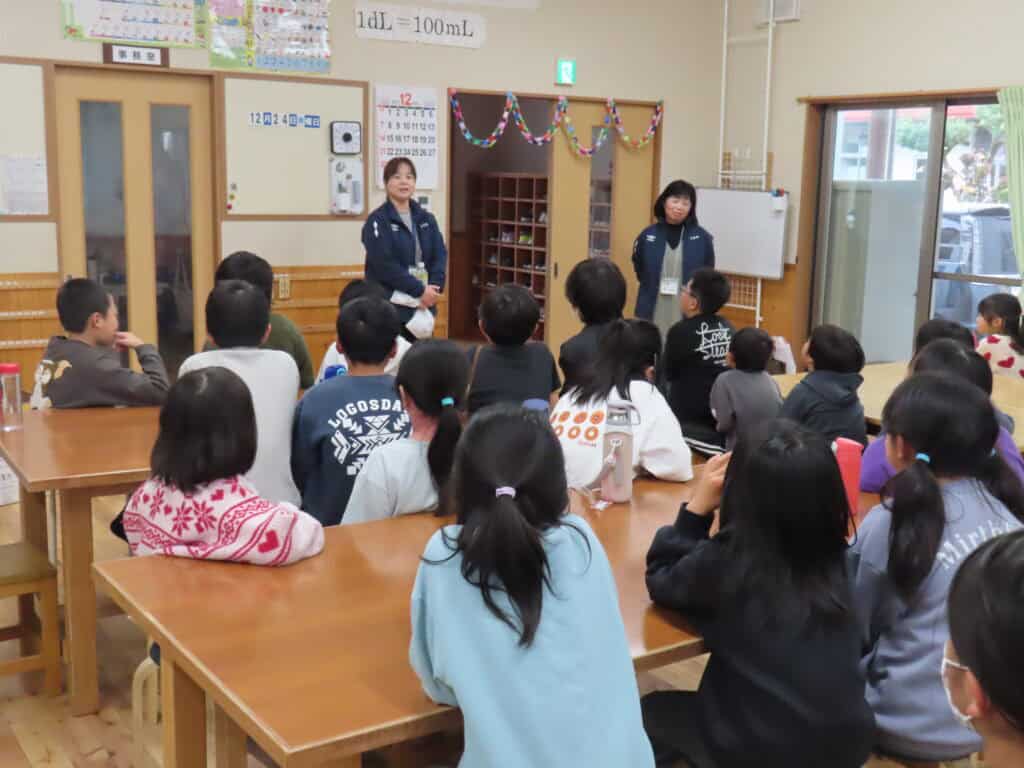 さて、今回のブログでは大盛り上がりだったクリスマス会の様子をお届けしたいと思います♪今年は湯前駐在所のお巡りさん、主任児童委員のお二方を招待し一緒にクリスマス会を楽しんでいただきました。