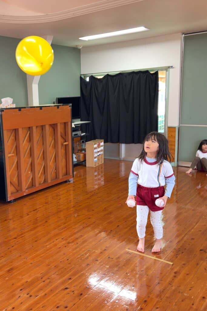 うめ組 運動遊び 2026 1/15 保育園ブログ うめ 今日は風船を使った運動遊び!🎈 『よ~く見て風船にボールを当てる!』『前転し、すぐに起き上がって風船をキャッチ!』など難しいかな~と見ていましたが、子どもたちは「簡単~♪」「できた~♪」「楽しい~♪」と余裕な様子でした😁 保育園ブログ うめ ばら組 運動遊び さくら組 運動遊び 関連記事 さくら組 マラソン 2026年1月24日 うめ組 マラソン 2026年1月24日 ばら組 マラソン 2026年1月24日 もも組 マラソン 2026年1月24日 たんぽぽ組 マラソン 2026年1月24日 うめ組 和太鼓教室 2026年1月16日 たんぽぽ・ひよこ組 豆まき練習 2026年1月15日 さくら組 運動遊び 2026年1月15日