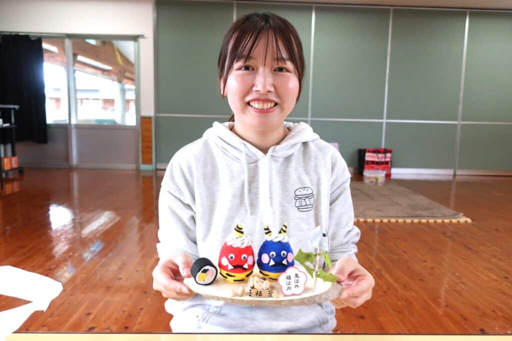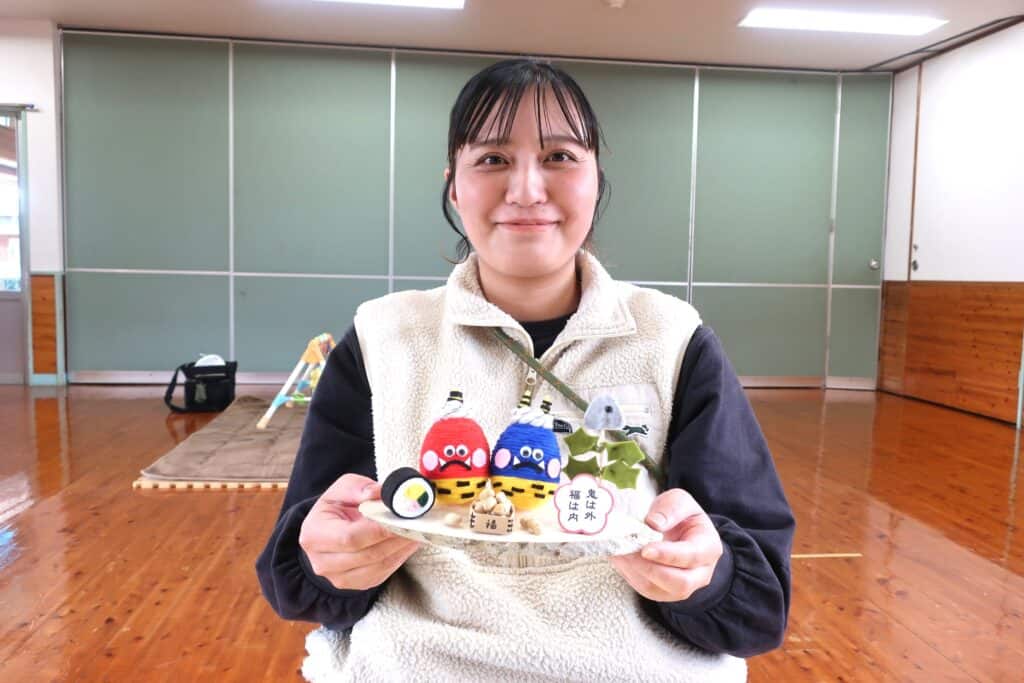 ちょぴり時間はかかってしまいましたが、楽しみながら作ってくださったお母さん方に感謝です🥰とっても可愛い鬼さんに恵方巻、ひいらぎいわしがのった節分飾りが出来上がりました❗