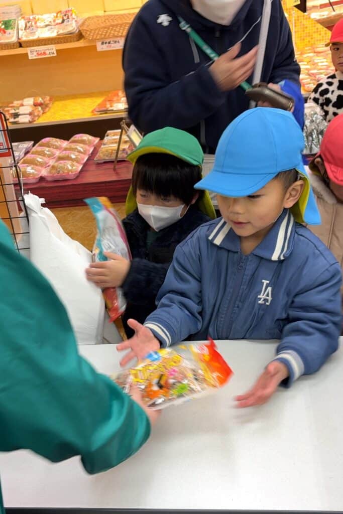 店頭に並んだ豆の中から、鬼にどの豆を投げるか皆で相談しながら購入しました👹