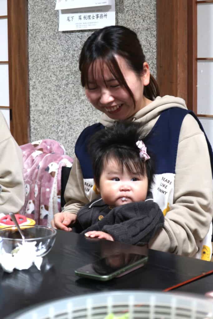 お母さん方が楽しい時間を過ごされている間、子どもたちは…お友だちと触れ合いを楽しんだり、ぽかぽか陽気に眠ってしまったり😴…おりこうさんにしていてくれました😄🎶でも、ランチが始まると美味しそうな匂いがわかるようで『お腹がすいたよ~💦』と涙する子も😭💦久々に、にぎやかな子どもたちでした‼️離乳食を始めている子どもたちには、村井さんが離乳食も準備してくださり、お母さんと一緒にいただいて満足そうな笑顔でした💕