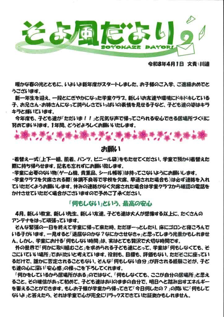 「そよ風だより 4月号」をお届けします。 2026 4/01 学童ブログ 学童ブログ ユノカフェでランチ🥪 📸ゆ~あい学童写真館📸 関連記事 📸ゆ~あい学童写真館📸 2026年4月14日 📸ゆ~あい学童写真館📸 2026年3月23日 「そよ風だより 3月号」をお届けします 2026年3月1日 📸ゆ~あい学童写真館📸 2026年2月24日 「そよ風だより 2月号」をお届けします 2026年2月2日 📸ゆ~あい学童写真館📸 2026年1月28日 📸ゆ~あい学童写真館📸 2026年1月17日 「そよ風だより 1月号」をお届けします。 2026年1月5日