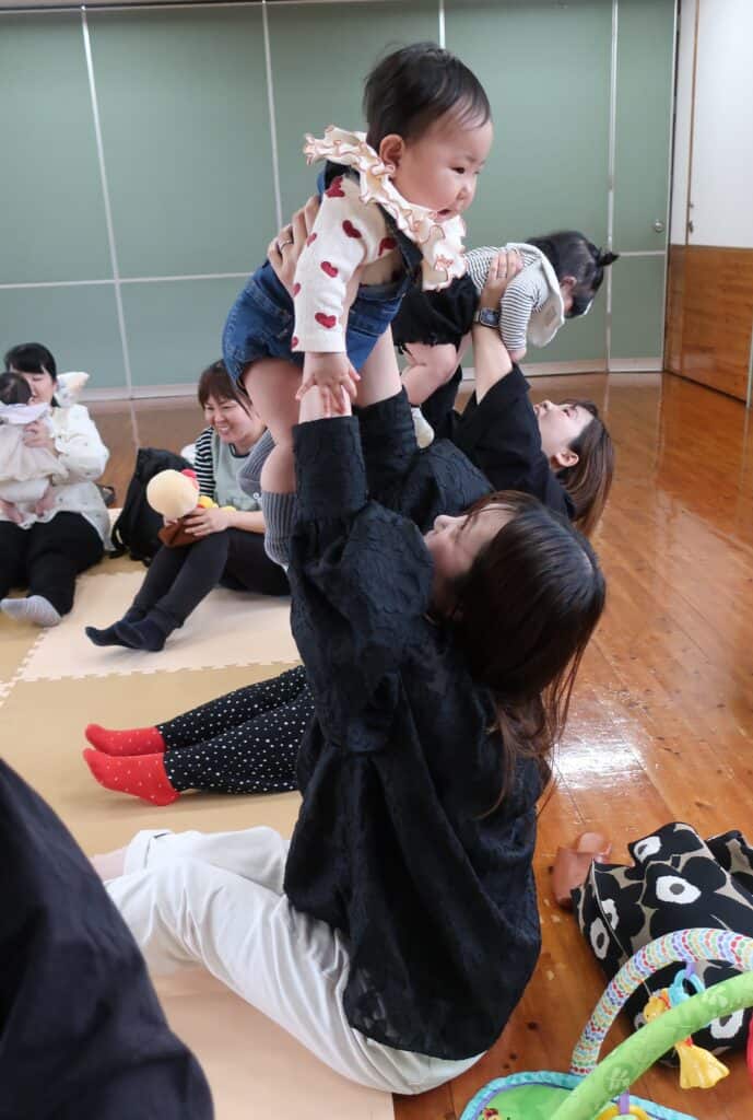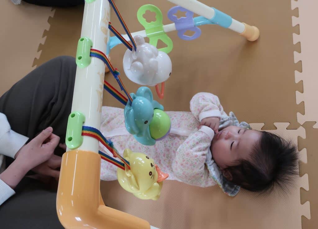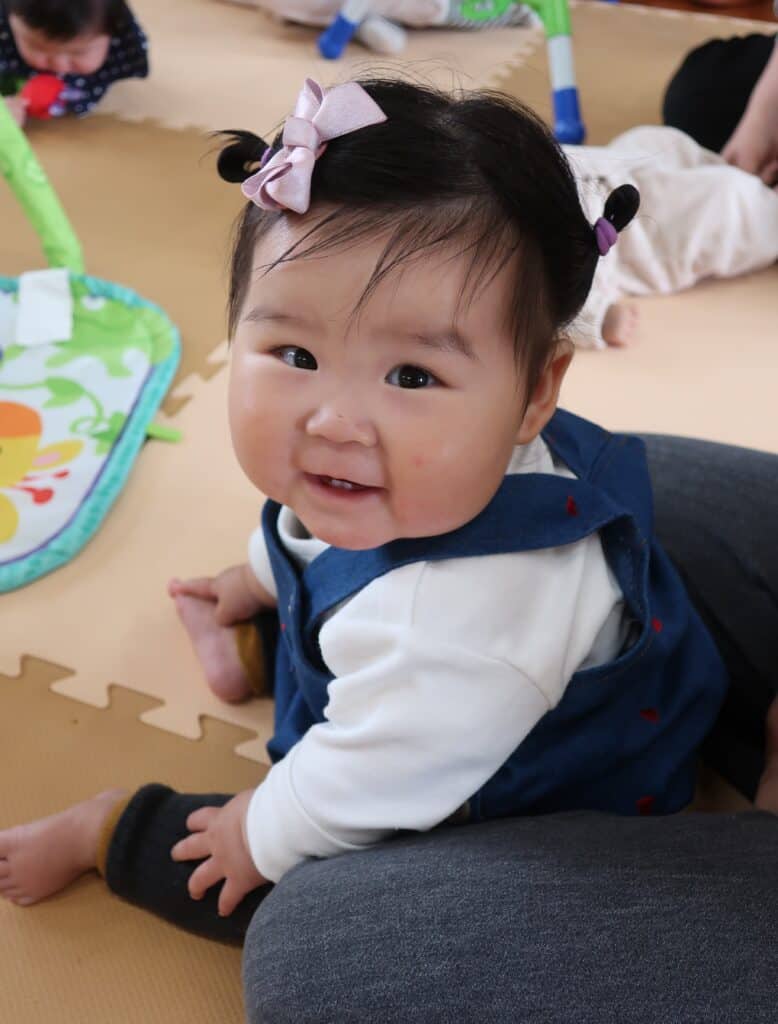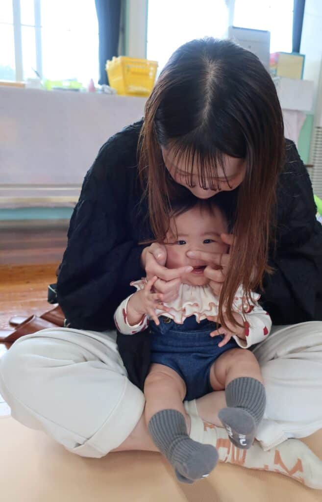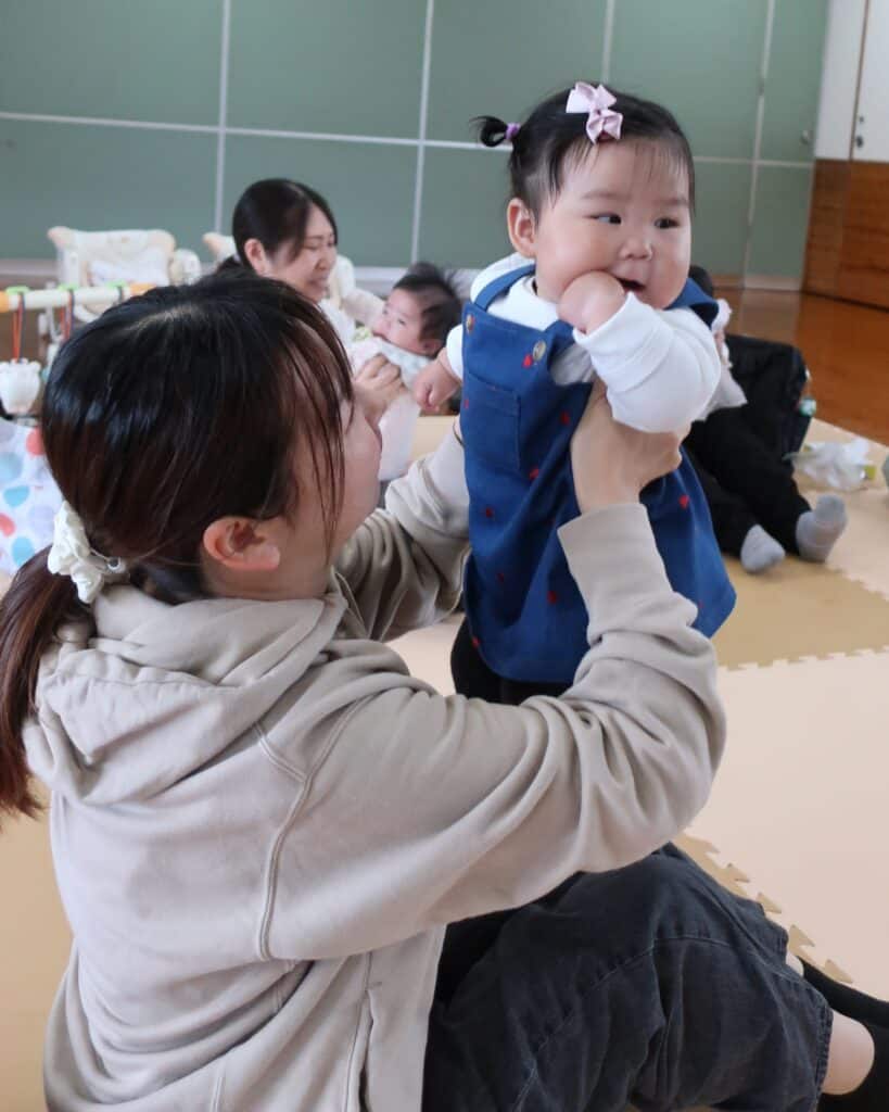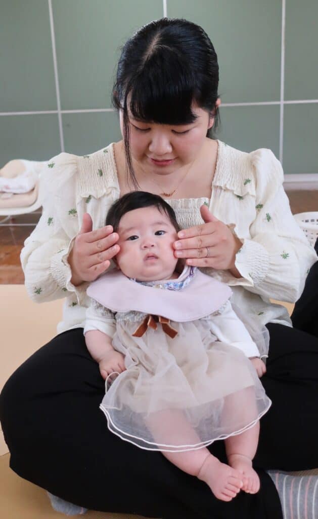 音楽に合わせてママにお顔をさわってもらったり~