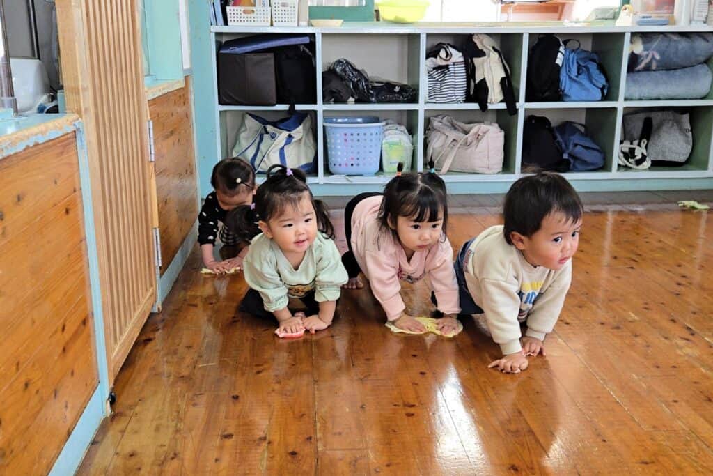 今日は、みんなでお部屋の大掃除をしました🧹 ひとり1枚ずつ、雑巾を渡して、まず初めにいつも使っている椅子を 保育者のお手本を見ながら、ふきふきしました🎶 椅子の後は、「モーモー」(ハイハイ)しながら床の雑巾がけをしました😊... -