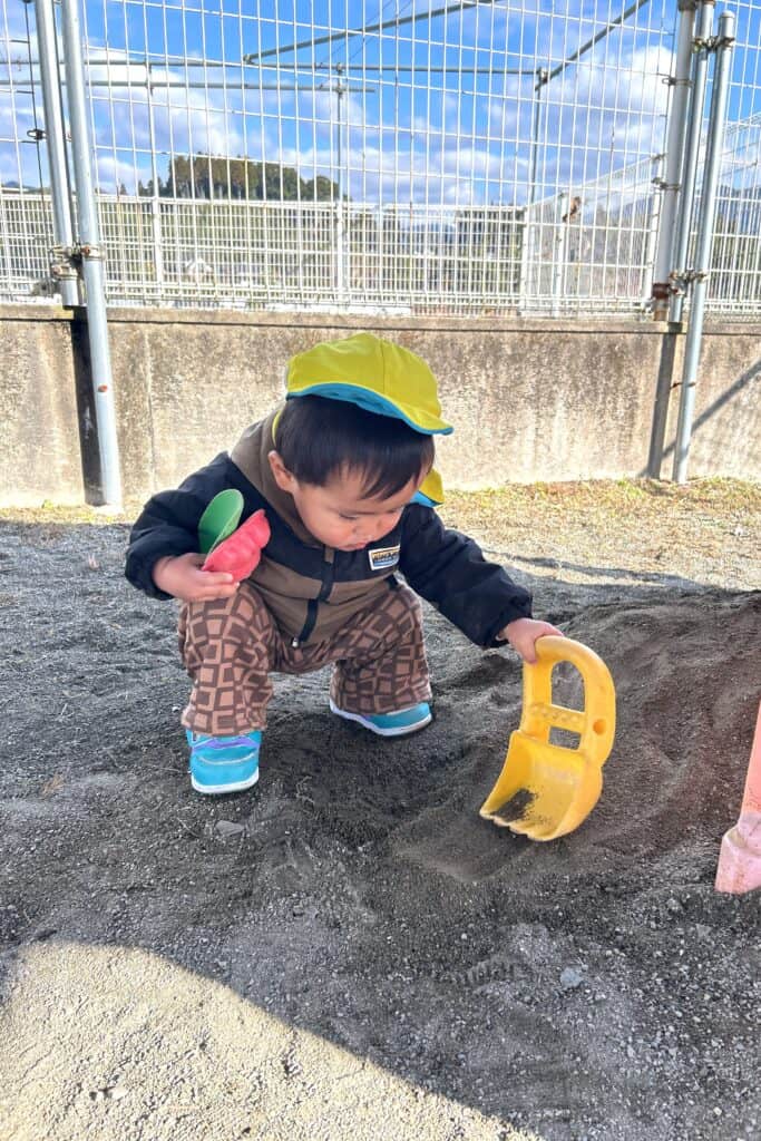 今日は園庭で沢山遊びました! 砂場セットで砂遊び「はいどうぞ」とご飯を作ってくれたりスコップで砂をすくってバケツに入れたりと楽しんでいました✨ -